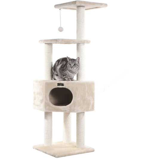 52-In Cat Tree & Condo Scratching Post Tower, Beige