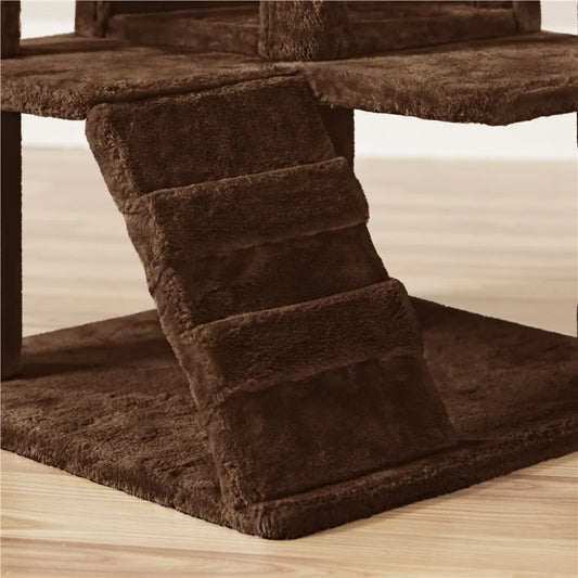• 53.9" H Cat Tree with Double Condos, Scratching Posts & Ramp, Brown