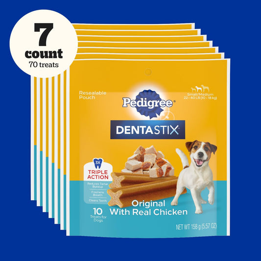 DENTASTIX Small/Medium Dog Dental Treats Original Flavor Dental Bones, 5.57 Oz - 10 Count (Pack of 7)