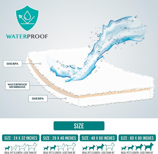 Fluffy Waterproof Dog Blanket for Bed Large Dogs, Soft Warm Pet Sherpa Throw Pee Proof Couch Cover, Reversible Cat Blanket Sofa Crate Kennel Protector, Washable Mat (Taupe Camel, 60X80)